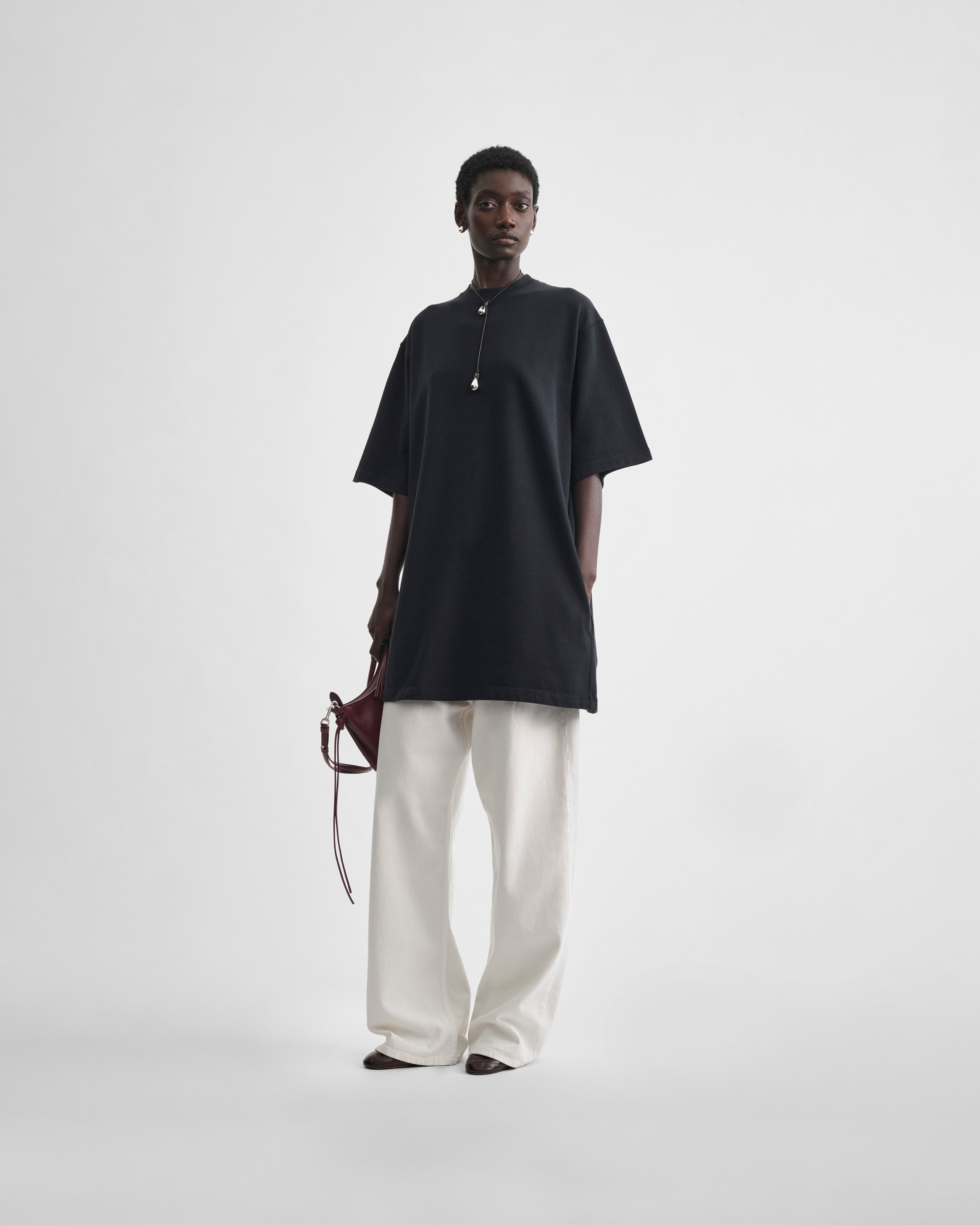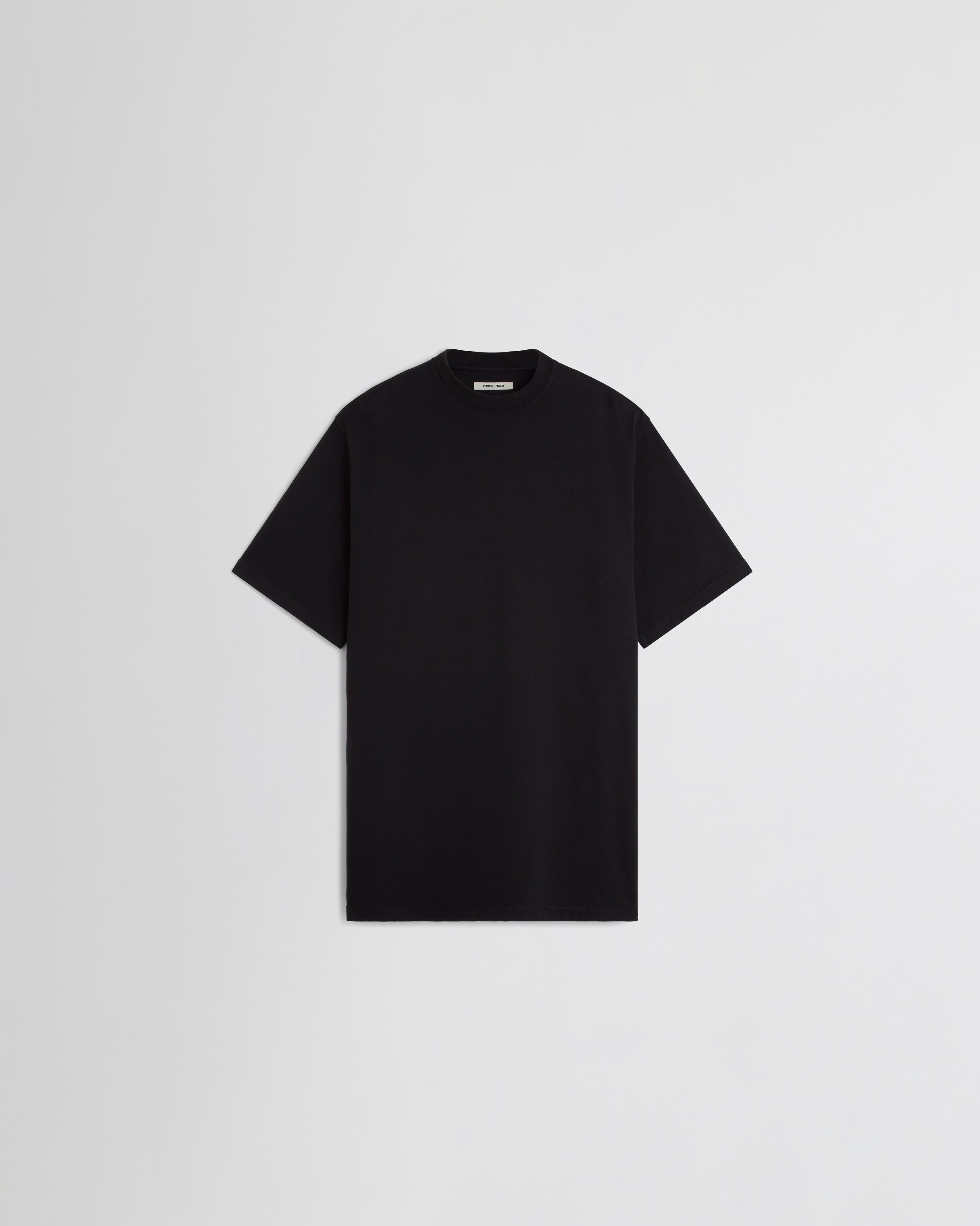 Oversized short sleeved T-shirt in black cotton. The substantial, heavy jersey is densely woven with a clean surface and washed for a worn-in, comfy finish. Pockets at the sides.