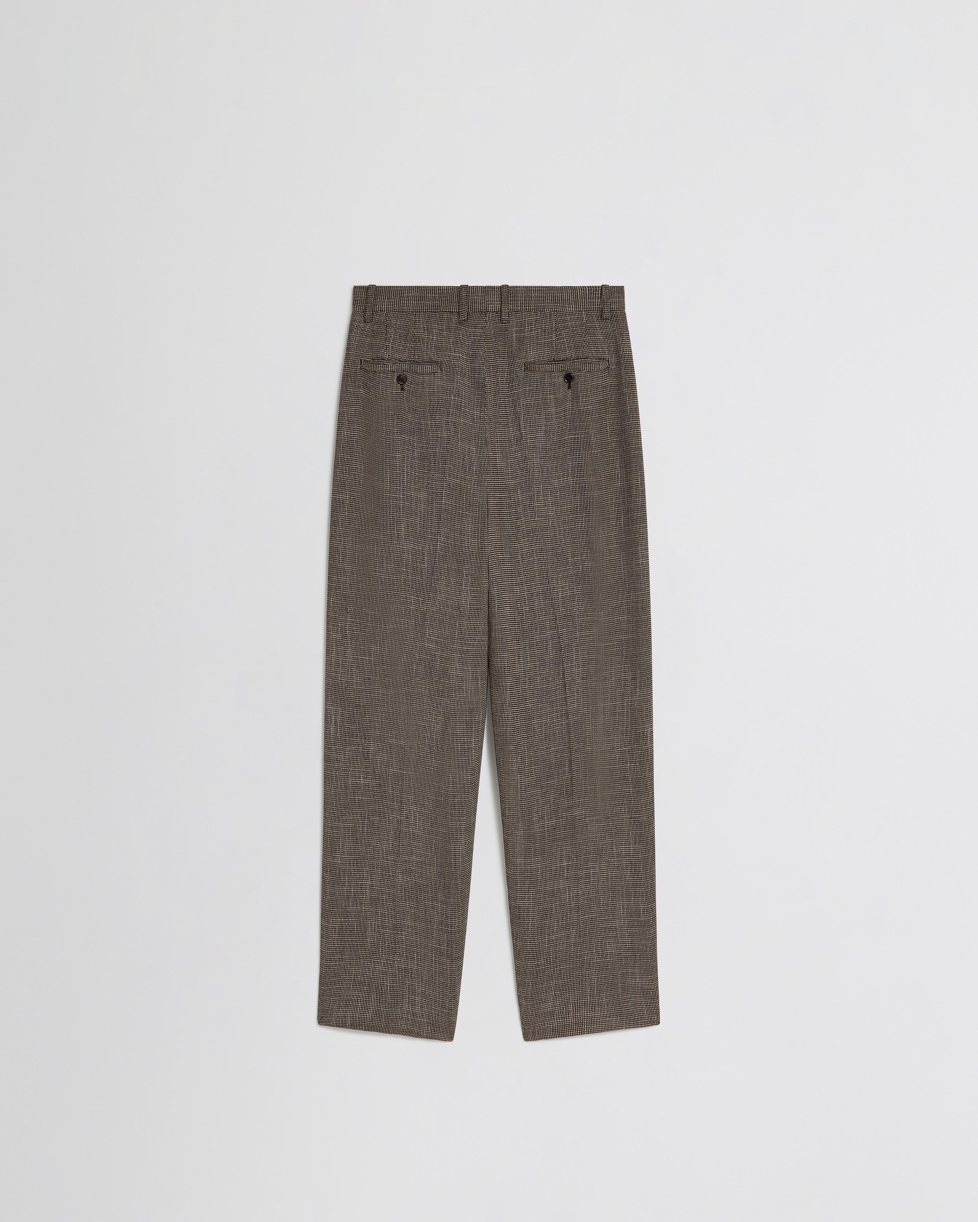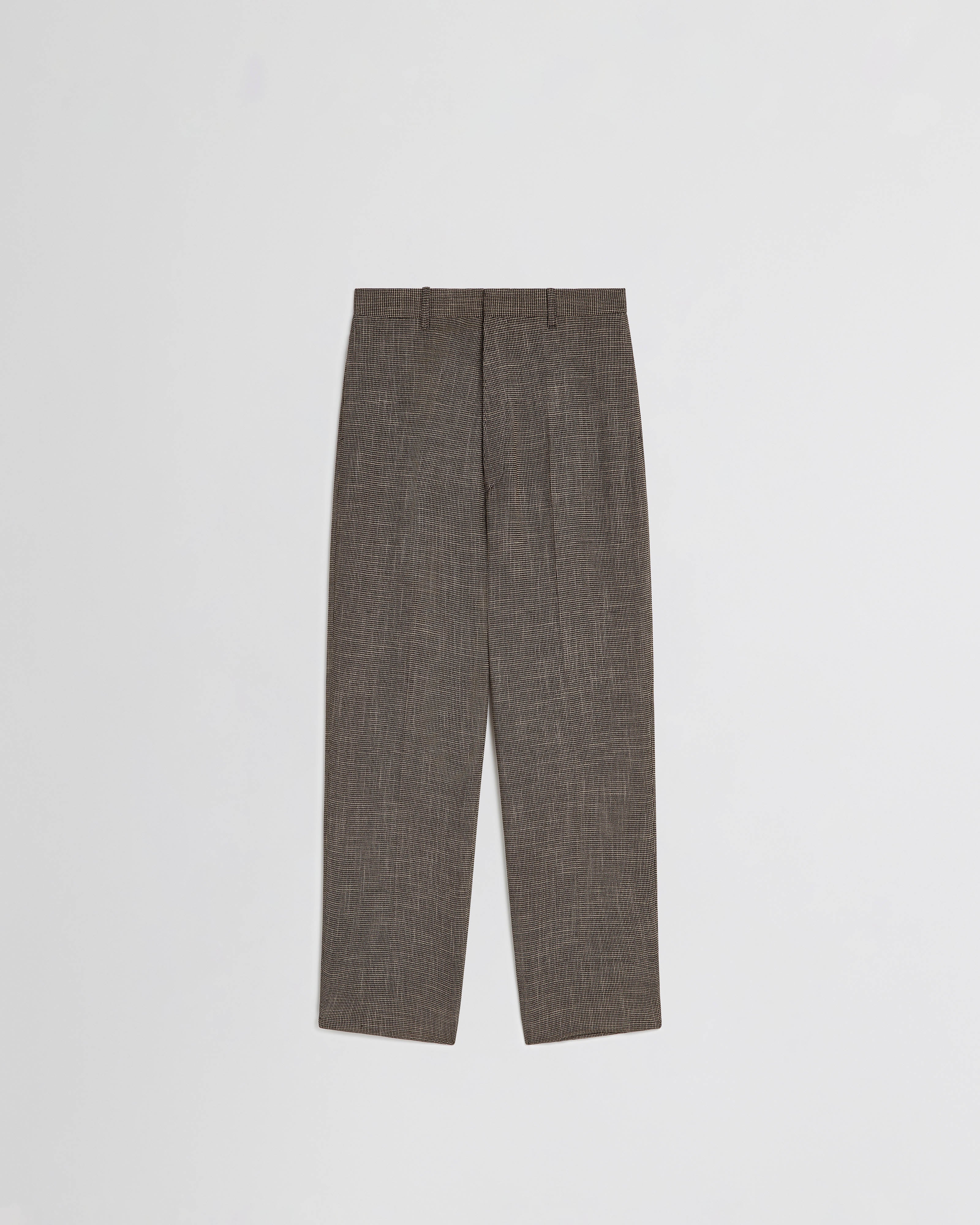 Tailored trousers in salt and pepper melange woven viscose. The trousers have a men’s suiting touch: an airy eased fit, a wide leg, ride low on the hips and pool at the ankles. Partially lined, from waist to knee.